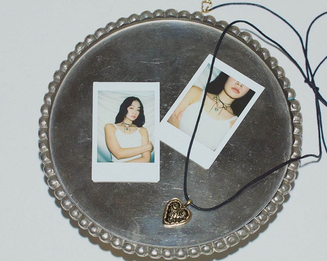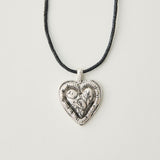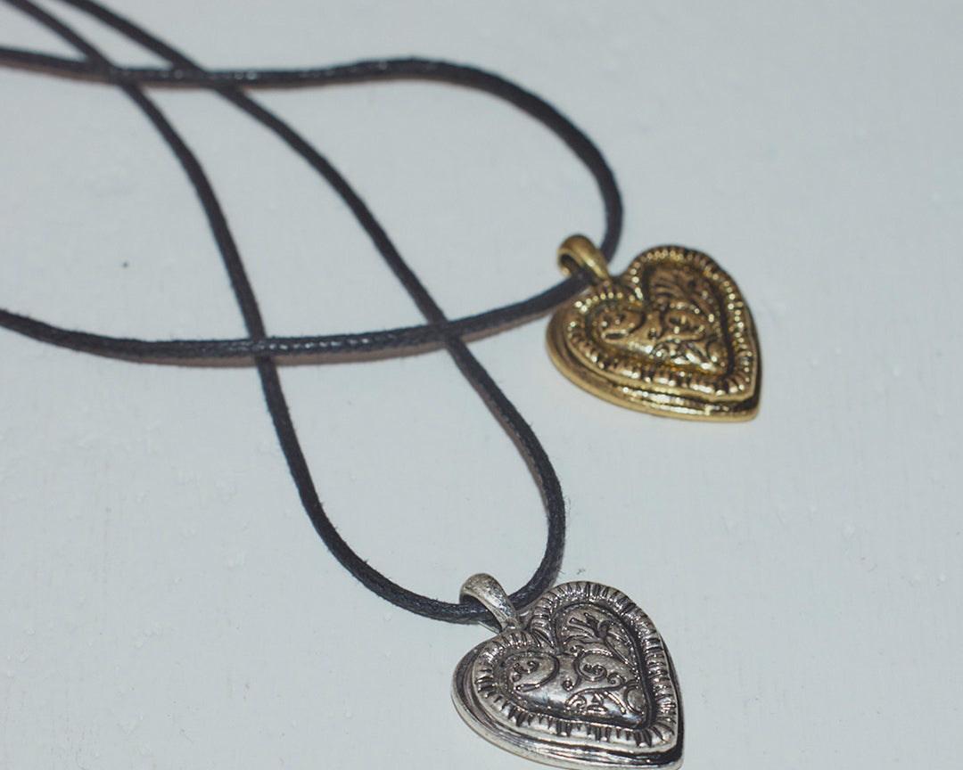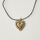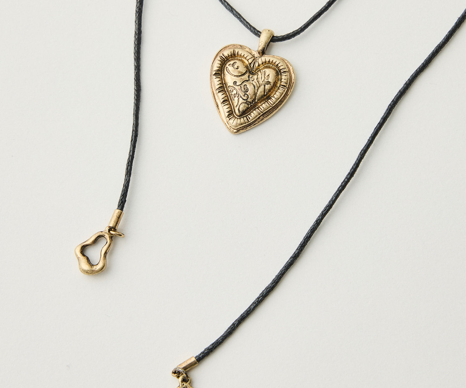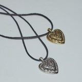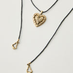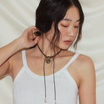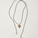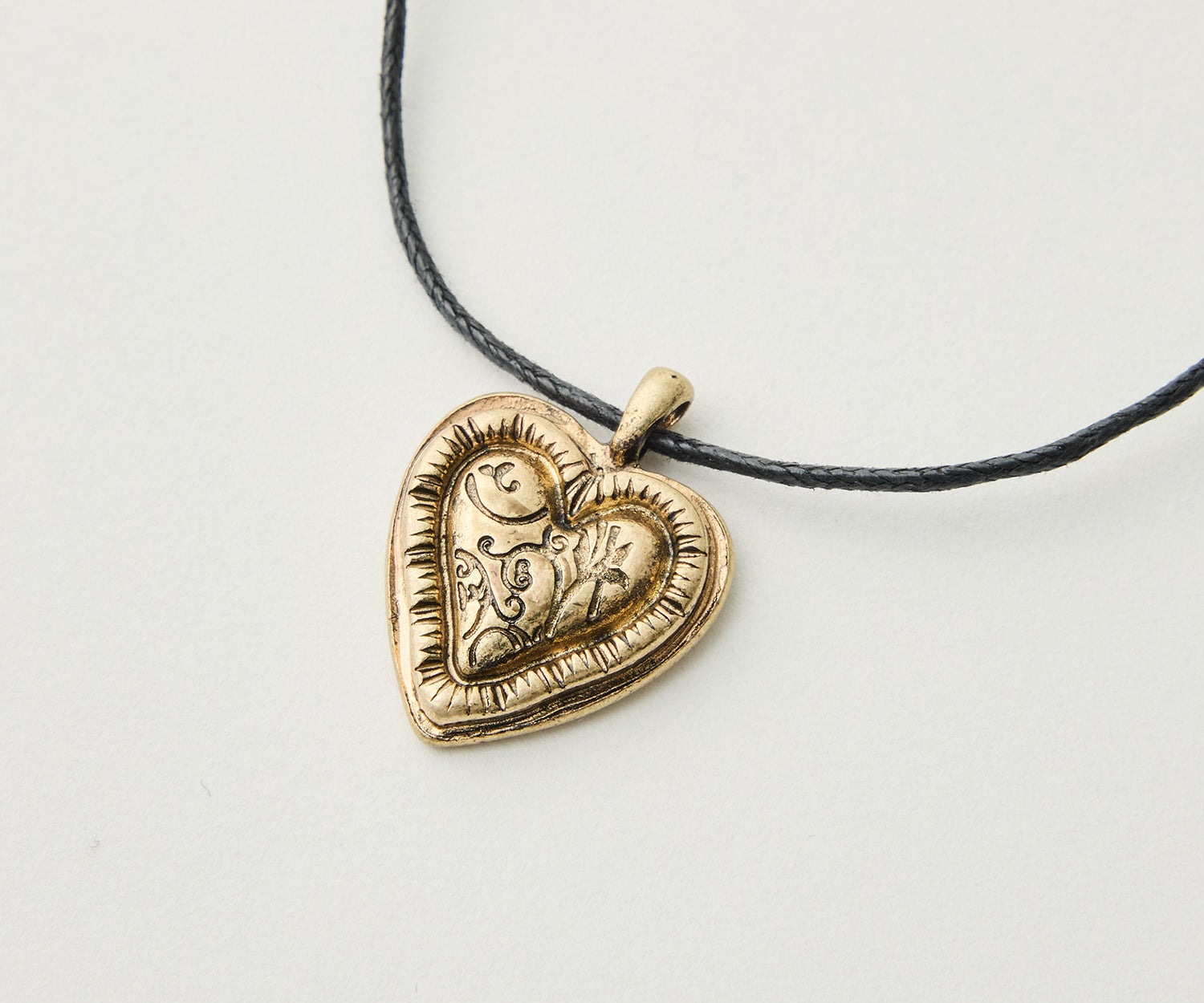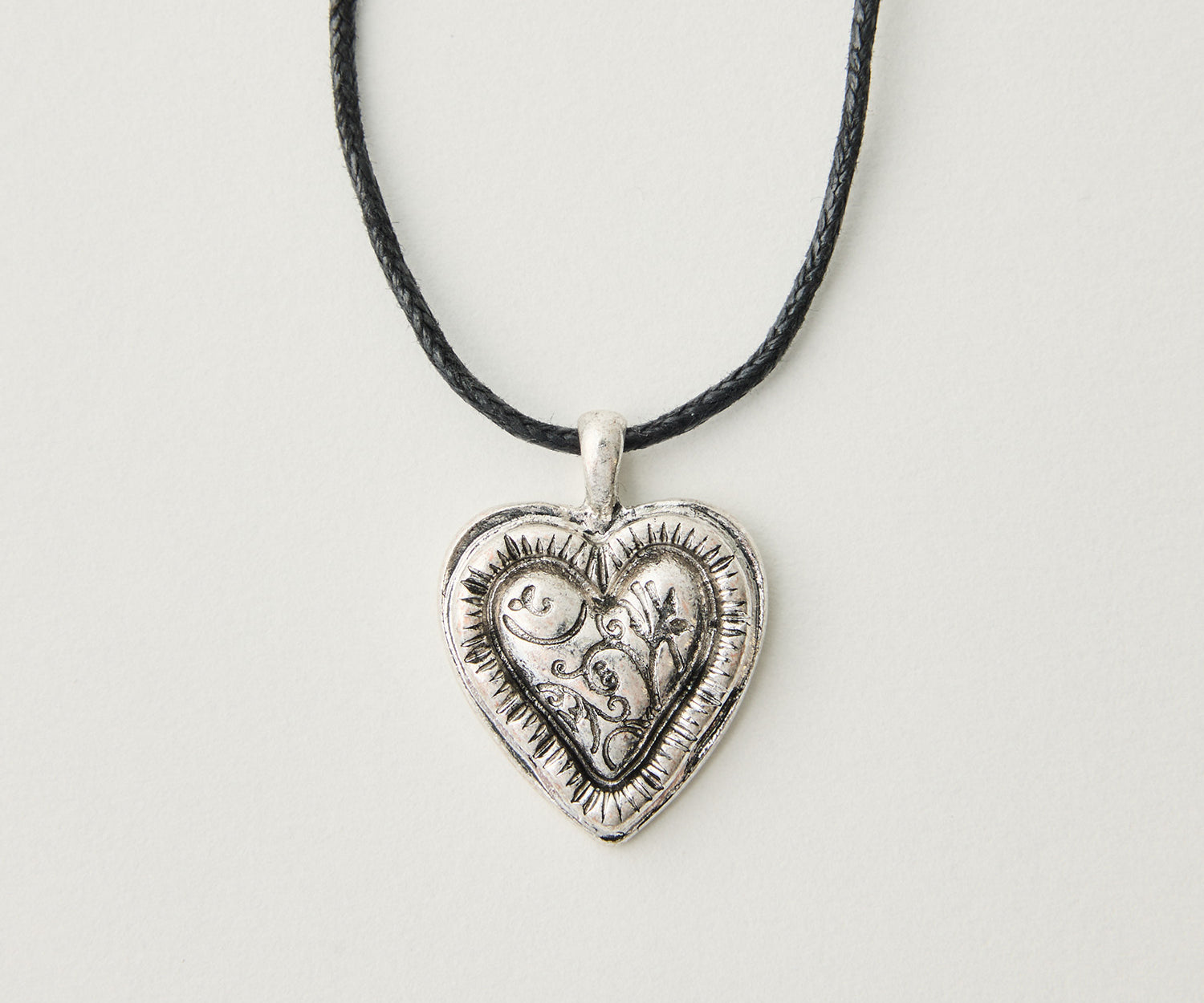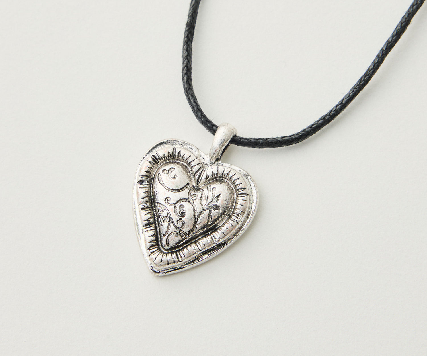 トップに大きめのハートが付いた紐仕様のチョーカー。 自分の好きな長さでリボン結びをしたり、1周だけ首に巻いてコードを垂らしたり、色々な巻き方でお使いいただけます。チョーカーネックレスのように短めにしたりヘアアレンジに使うのもおすすめです。 大きなハートチャームがデコルテ部分を華やかに見せてくれます。